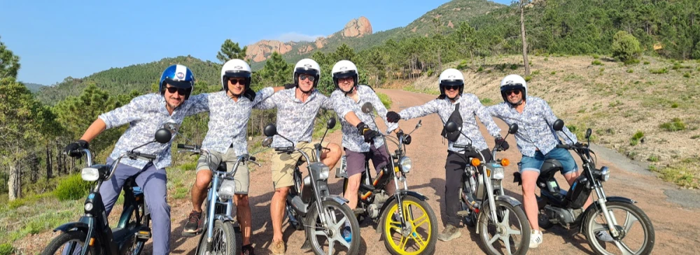 Si vous cherchez à surprendre le futur marié avec une activité différente et originale pour son enterrement de vie de garçon, optez pour une excursion en mobylette vintage au cœur du massif de l'Estérel. Cette aventure unique est idéale pour ceux qui préfèrent la détente aux sensations fortes et qui n'ont pas forcément envie de s'aventurer en mer. Vous longerez la Corniche d'Or, une route panoramique à couper le souffle qui vous offrira des vues exceptionnelles sur les falaises rouges et la mer Méditerranée. À chaque virage, vous serez émerveillés par la beauté des paysages, tout en profitant du charme de ces petites mobylettes rétro. L'excursion se fait à votre rythme, dans une ambiance conviviale et détendue, avec une passionnée et véritable collectionneuse comme guide. Cette activité est bien plus qu'un simple tour en moto : c'est une véritable immersion dans l'authenticité de la région, vous permettant de découvrir ses recoins les plus secrets, tout en roulant avec style. Loin de l’agitation, vous partagerez un moment intime et agréable, où le futur marié pourra savourer cette expérience insolite et mémorable, tout en renforçant les liens avec ses amis. Que ce soit pour la découverte des paysages ou pour le plaisir de conduire une mobylette vintage, cette sortie fera sans aucun doute de son EVG un moment inoubliable.