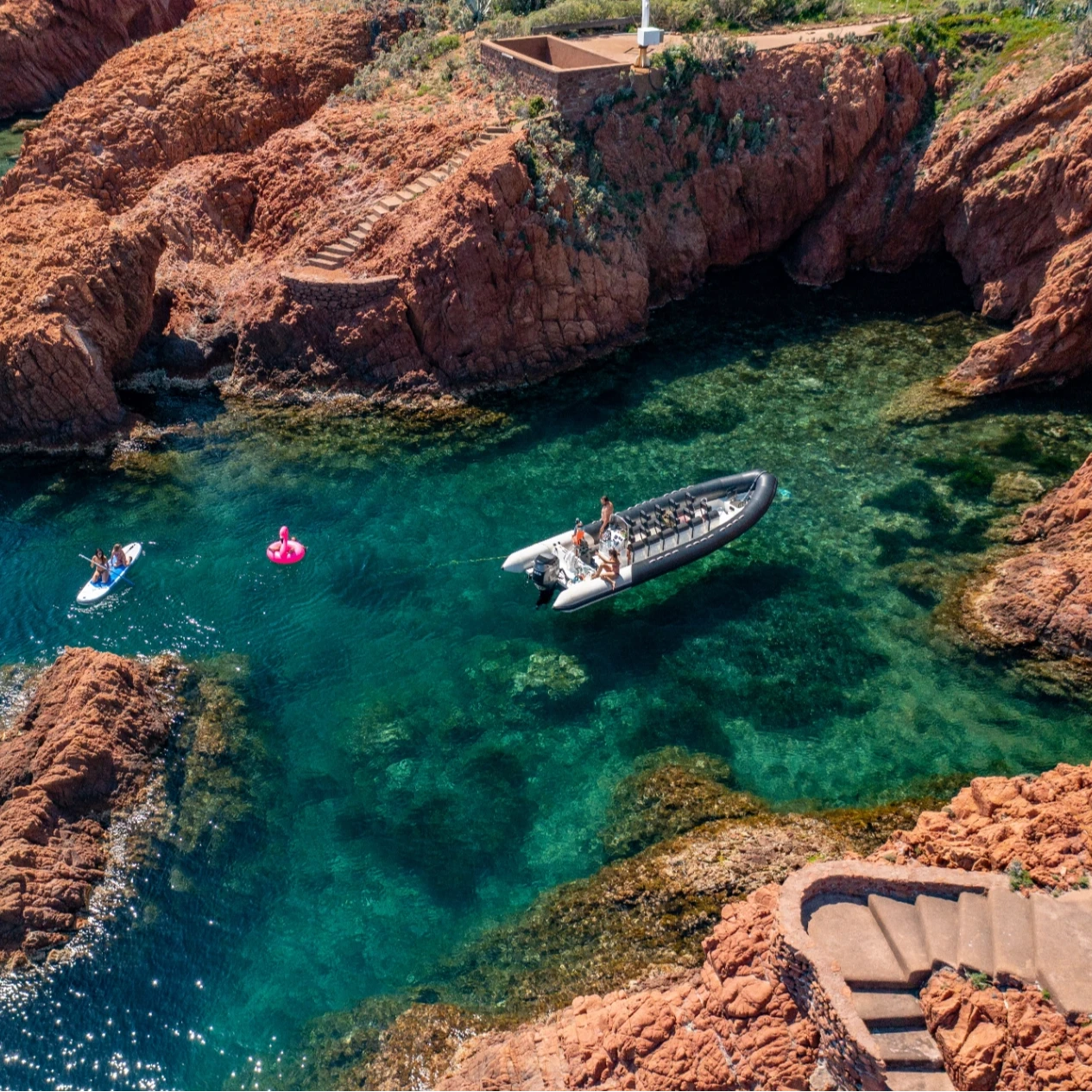 Si l'option farniente ne vous convient pas mais que vous souhaitez tout de même profiter de la mer, une sortie en semi-rigide est idéale pour plus de sensations et de vitesse. Ces bateaux plus petits vous permettront de vous rapprocher au plus près des côtes, de visiter des criques et des grottes secrètes, et de profiter d’une pause baignade dans des endroits isolés. Vous pouvez également privatiser le bateau, qui dispose de 12 places, pour une expérience encore plus exclusive.