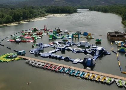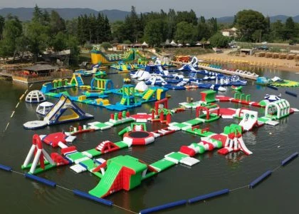 The Giant Water Sports Park is one of the main attractions of Water Glisse Passion Park. It spreads over an area of 3000 m² where you can enjoy trampolines, climbing walls, catapults, acrobatic courses, and over 200 inflatable structures.