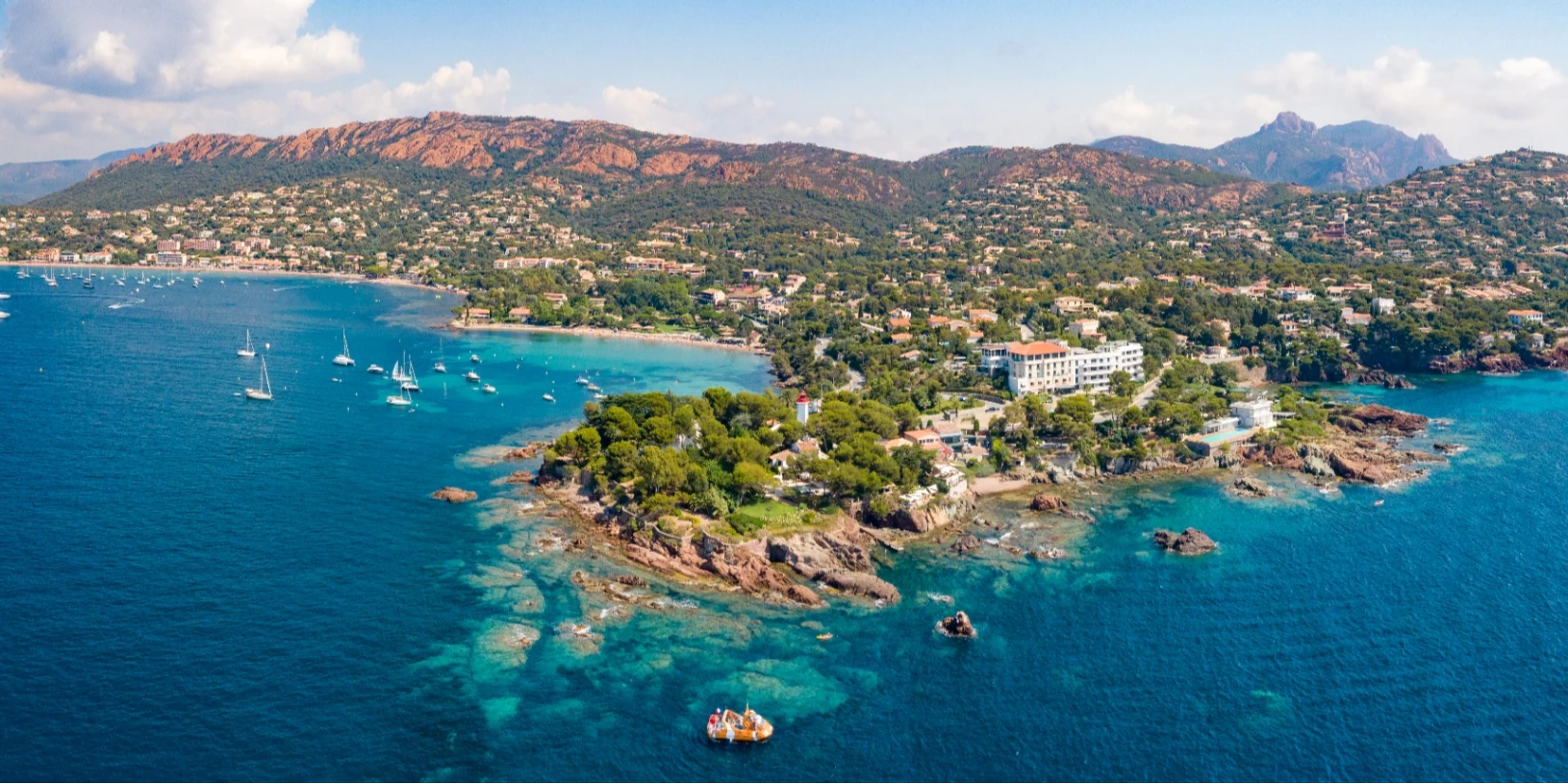 - Vous longez les falaises rouges du Cap Dramont qui plongent dans l’eau turquoise